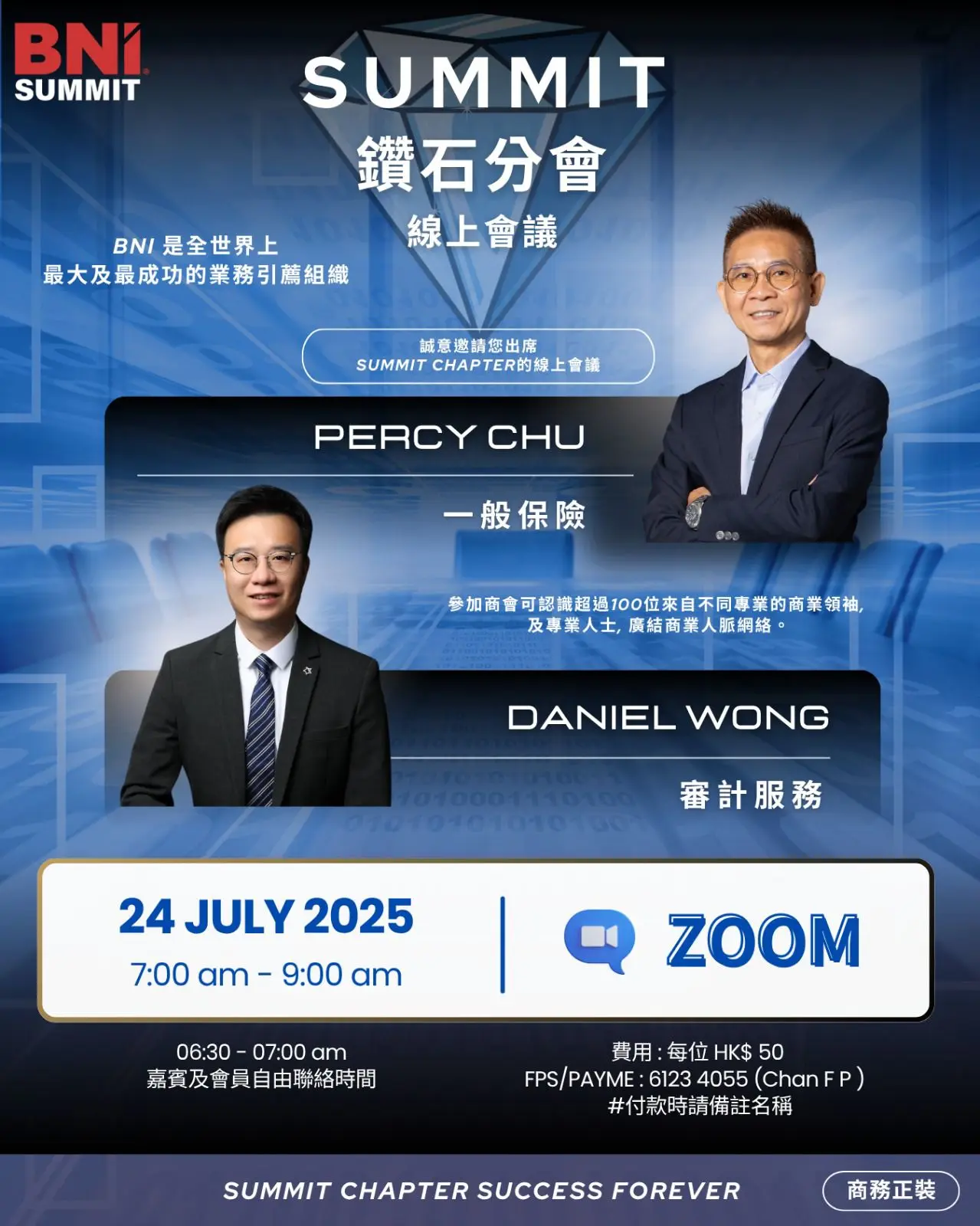 2025年7月17日 星期四早上7時正至9時正於 朗廷酒店2樓宴會廳 會舉行「Summit 商務會議」。