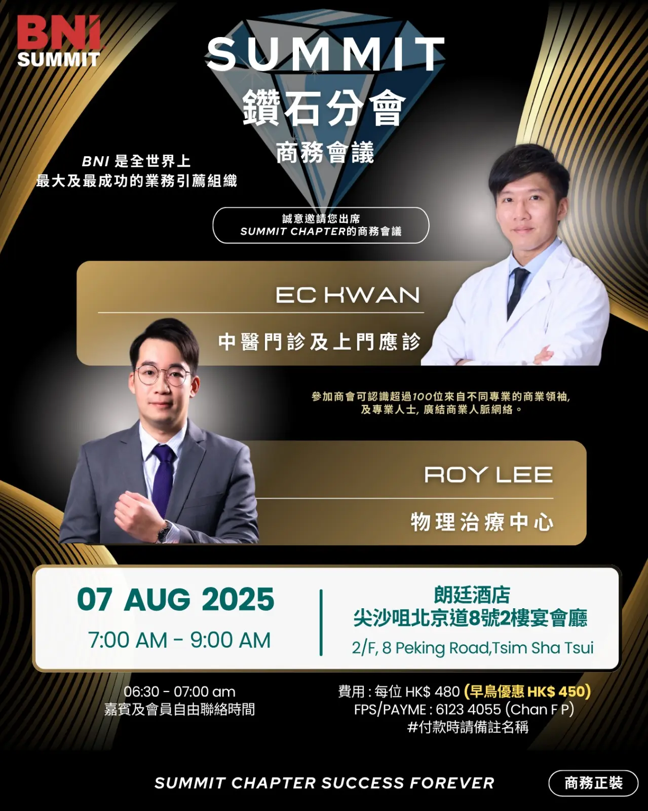 2025年8月7日 星期四早上7時正至9時正於 朗廷酒店2樓宴會廳 會舉行「Summit 商務會議」。
